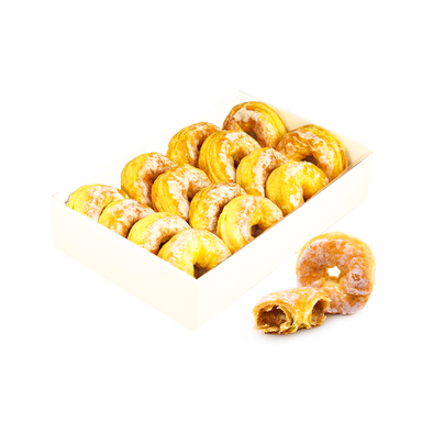 CONTENIDO: 14 Unidades, 1 Kg Deliciosas rosquillas de hojaldre de mantequilla, rellenas de un cabello de ángel especial, tostado y con un toque de...